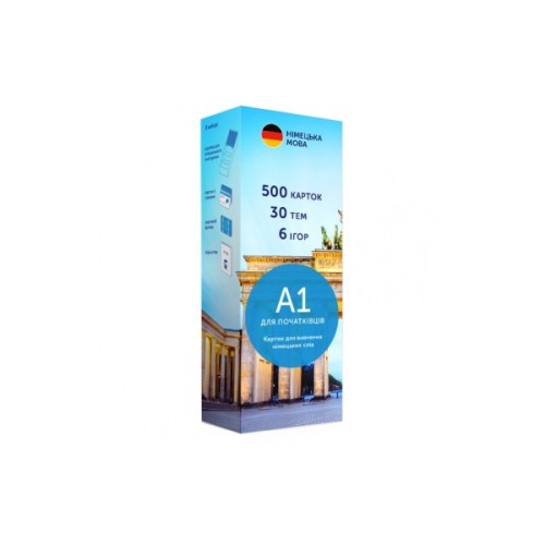 Німецька А1, початковий — набір карток для тих, хто розпочинає вивчати німецьку. Чудовий подарунок та мотивація для дітей, друзів та близьких. В цьому наборі 631 німецьке слово та 599 прикладів їх вживання.