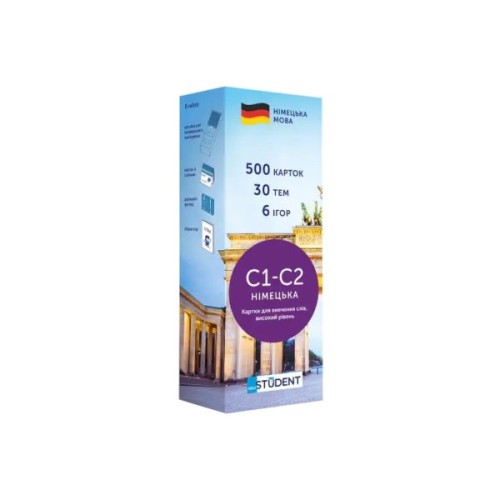 Картки для вивчення німецької на рівні С1-С2 — це просунутий набір для тих, кого не лякають довгі слова типу (der) Sommerschlussverkauf. Підійде тим, хто хоче володіти німецькою на рівні справжнього німця та стати muttersprachler. Картки допоможуть описувати з неймовірною точністю свої емоції, навколишній світ та вільно підтримувати будь-яку розмову німецькою. У цьому наборі 1048 слів та 553 приклади їх вживання.