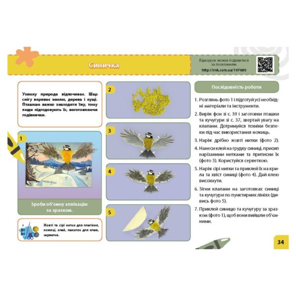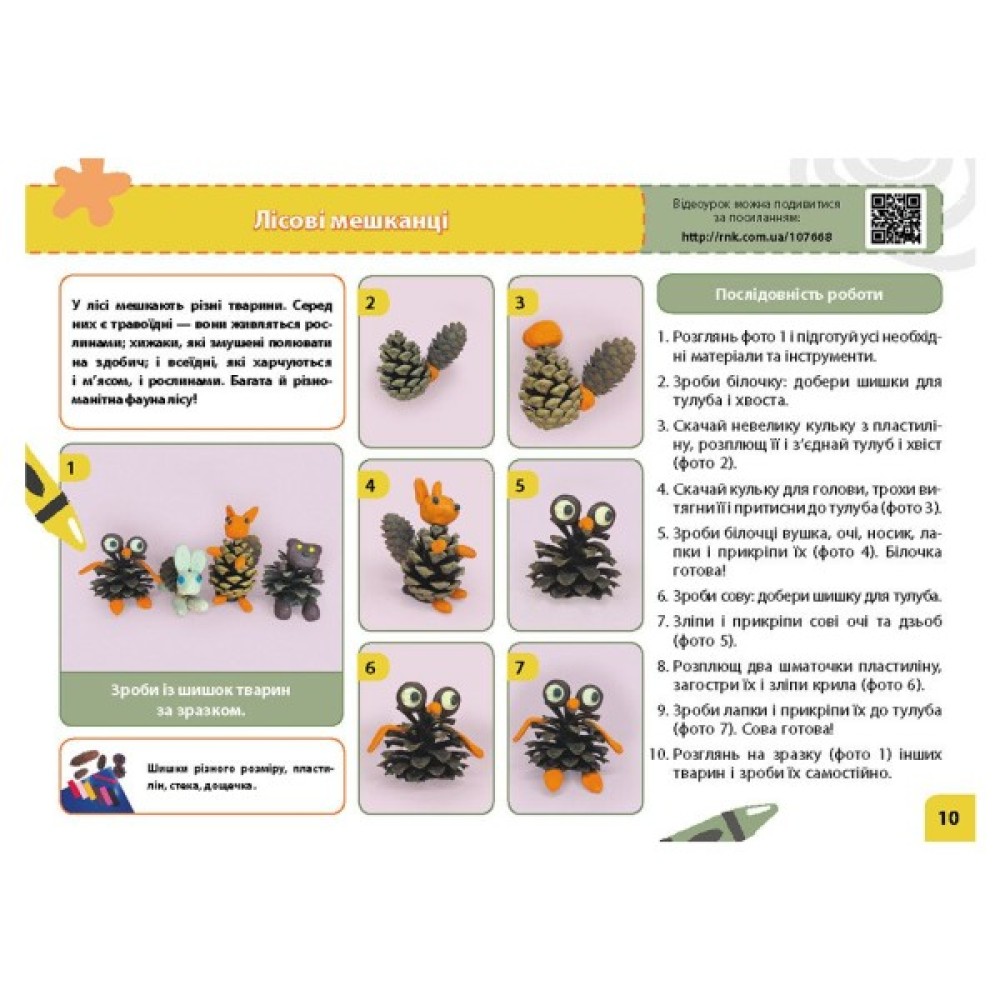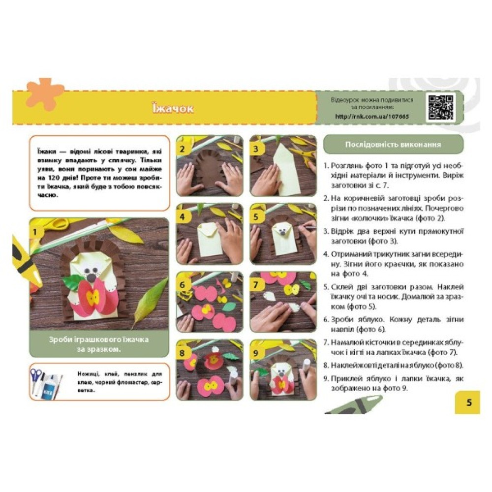 • перелік необхідних матеріалів — ножиці, клей, олівці, кольоровий папір, пластилін, природні матеріали;