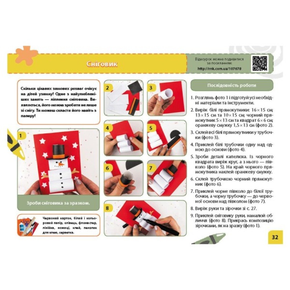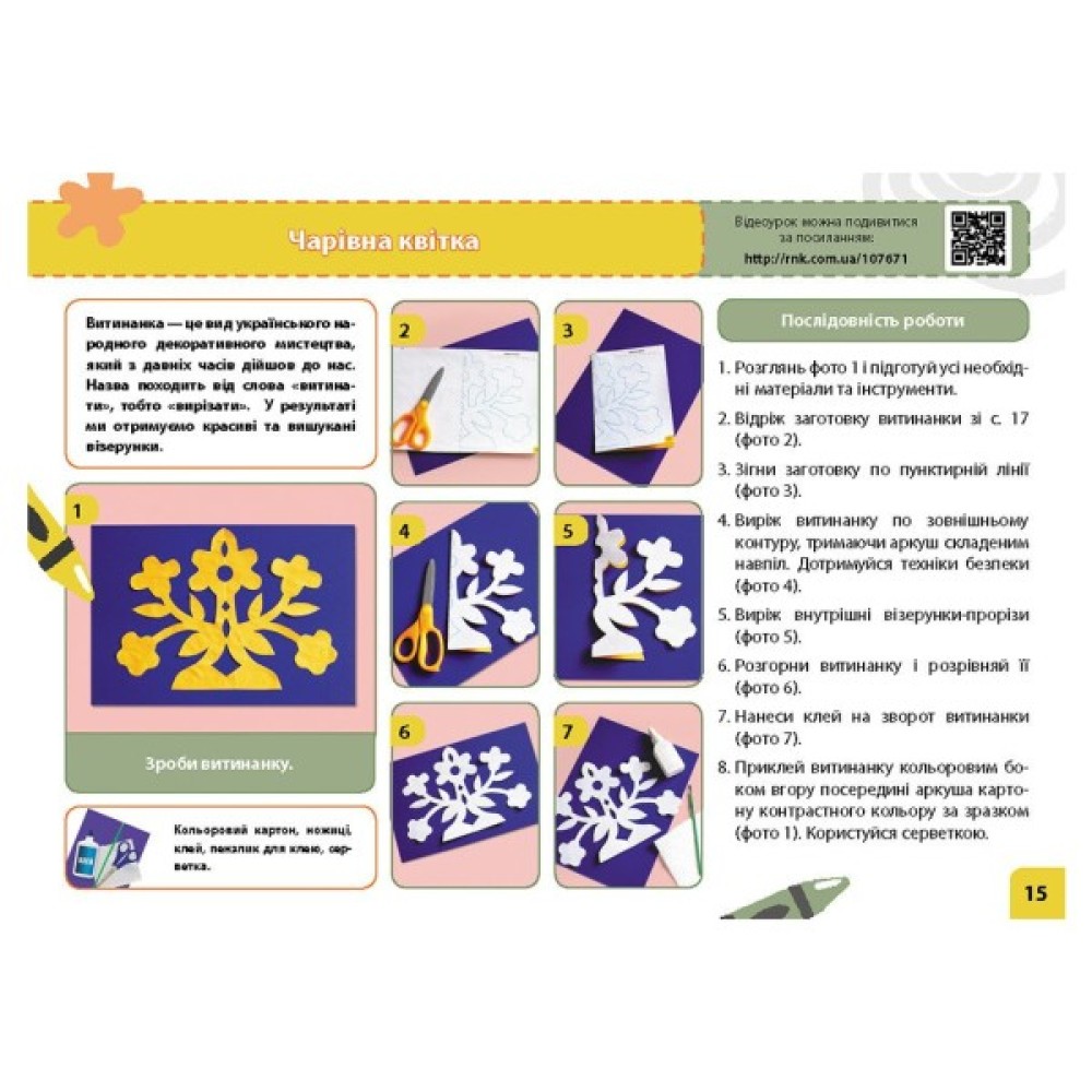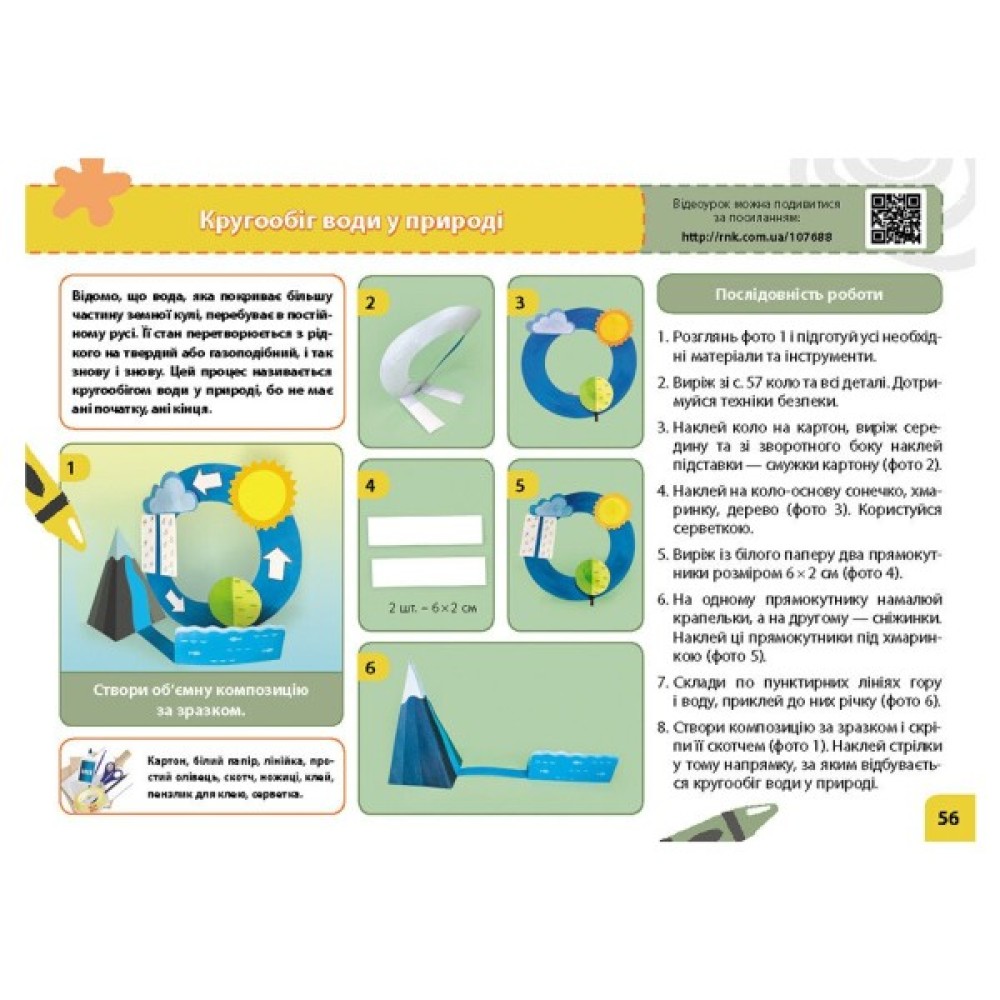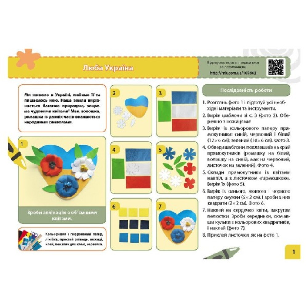 • перелік необхідних матеріалів — ножиці, клей, олівці, кольоровий папір, пластилін, природні матеріали;
