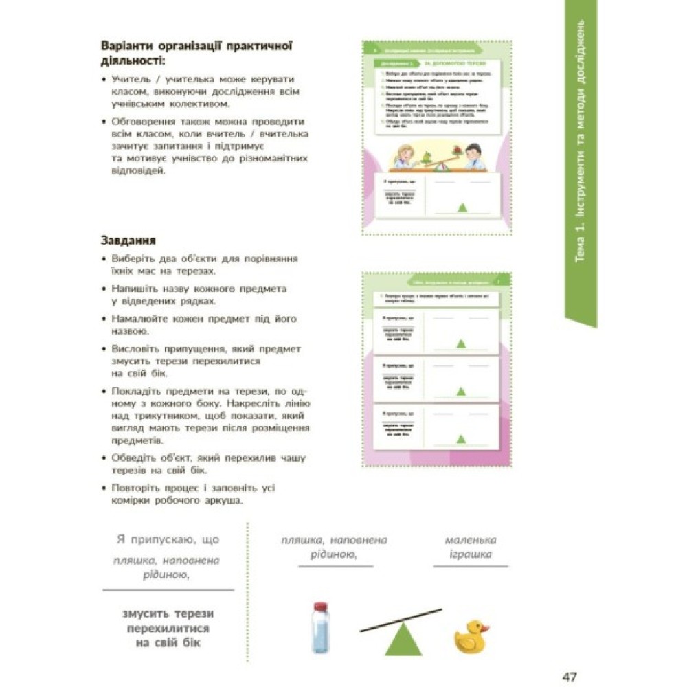 Методичні поради щодо організації дослідів, роботи з учнівськими зошитами та використання наукових інструментів.