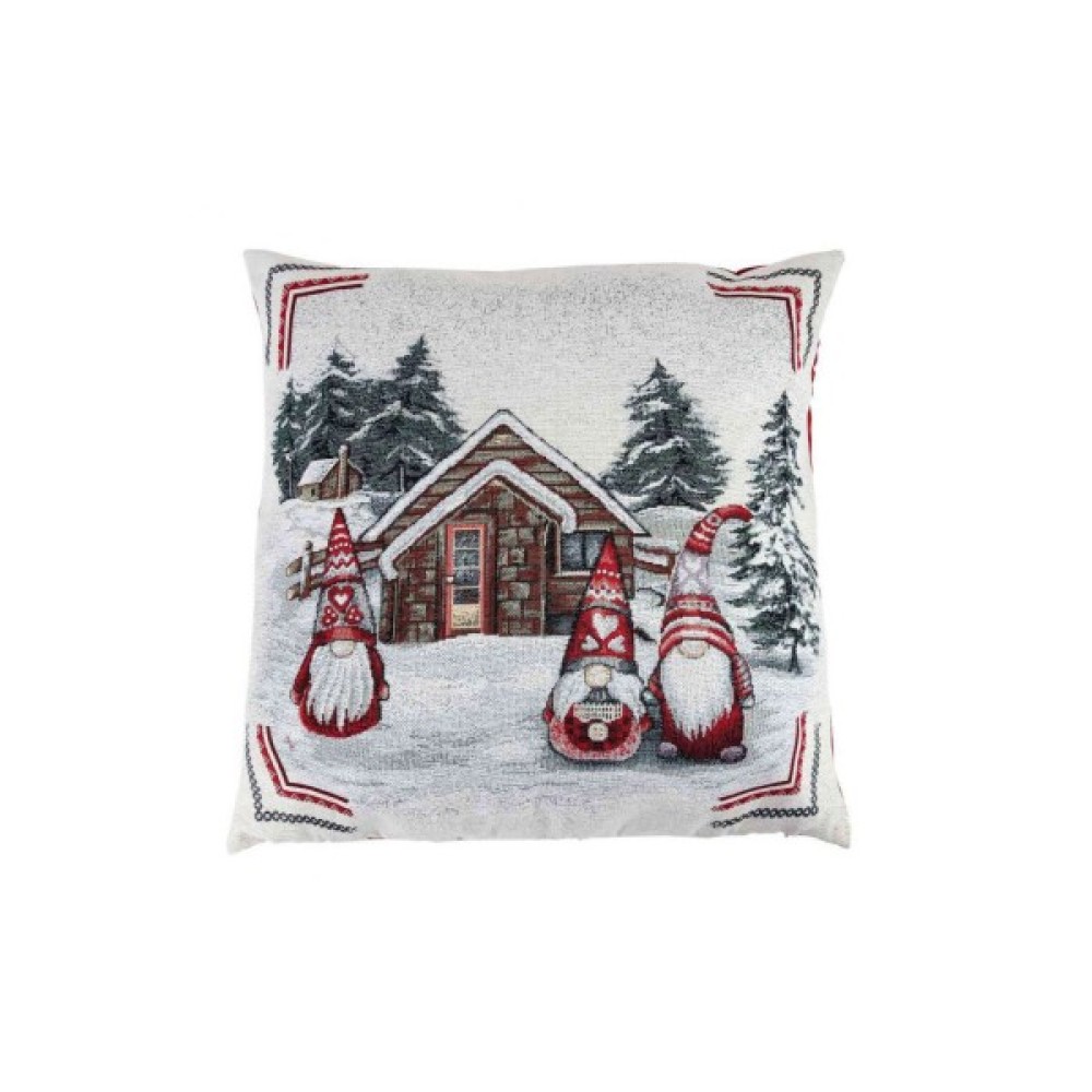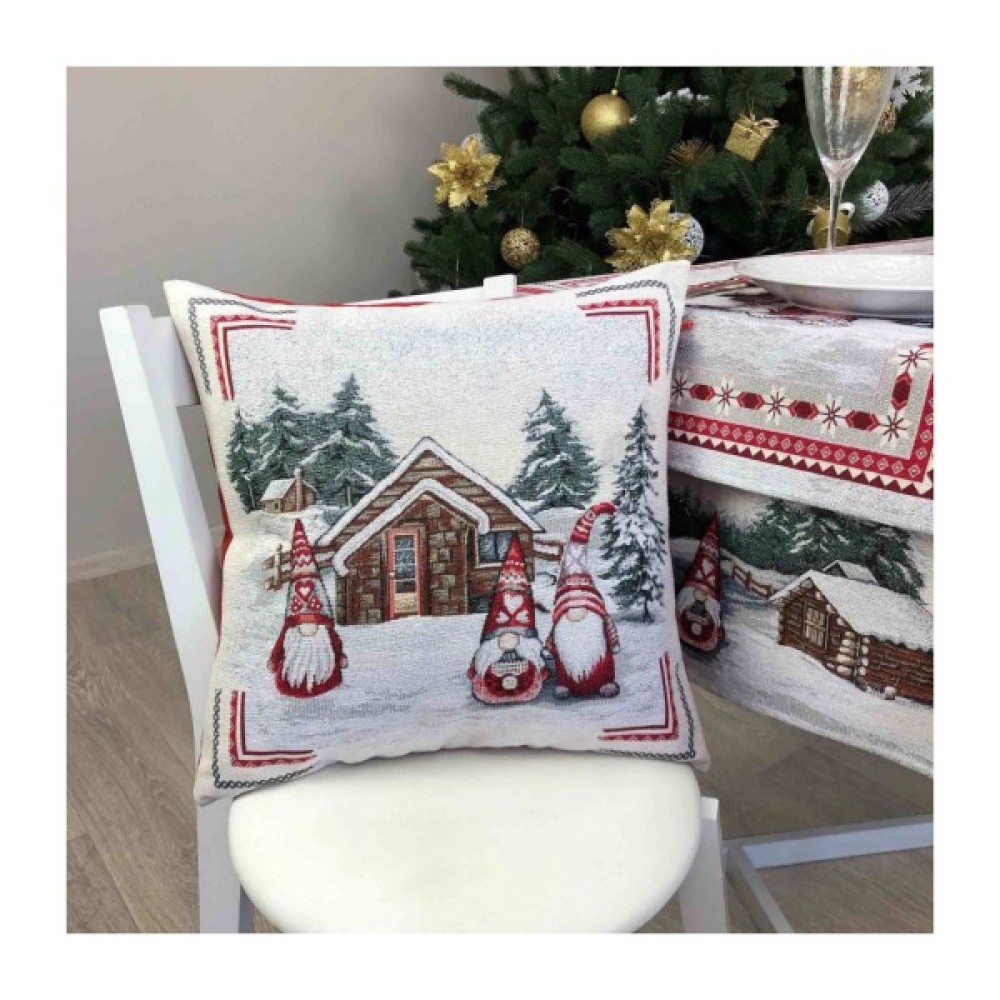 Наволочка, Прованс, декоративна, Snowfall, Три, гноми, біля, будиночка, 45х45, см, Сіра, 23404