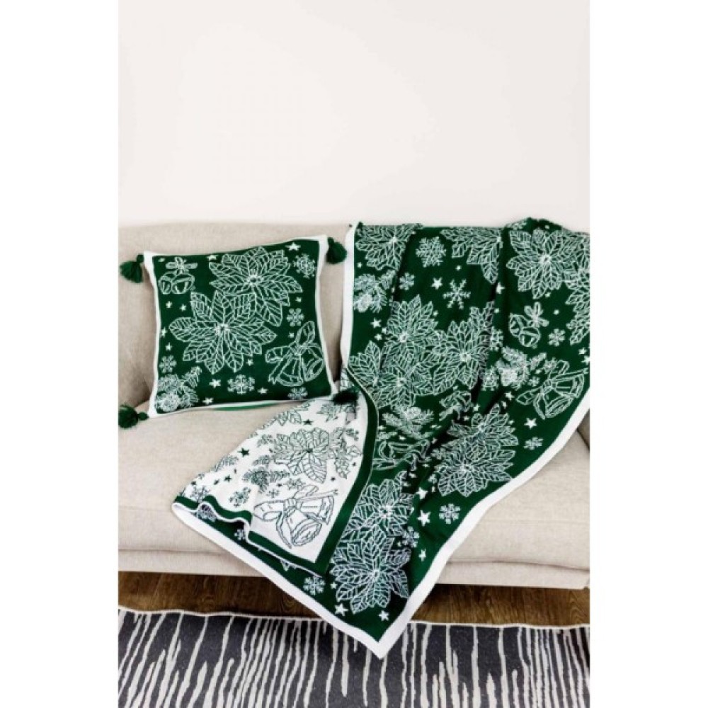 Наволочка, Прованс, декоративна, в'язана, Різдвяник, зелений, 45х45, 030170