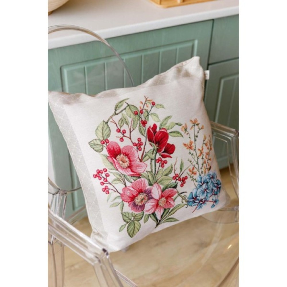 Наволочка Прованс гобеленова декоративна Квіти в рамці 45х45 см (034209)