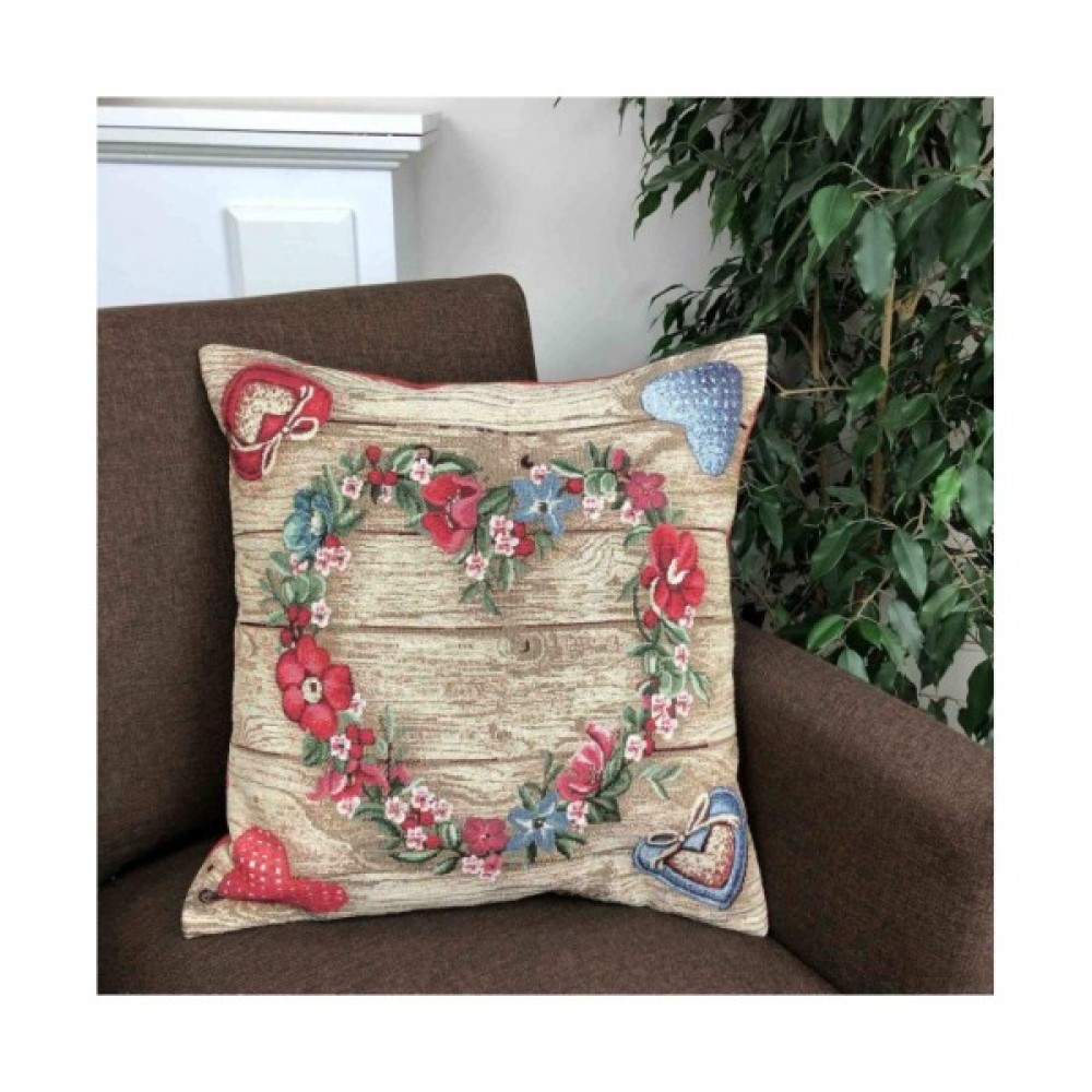 Декоративна наволочка з іспанської тканини, відмінної якості. Наволочка на блискавцi. З однієї сторони гобелен, з іншої бавовна однотон Розмір: 45х45 см Склад тканини: 55% бавовна, 45% поліестер (гобелен) Виробництво: Україна.