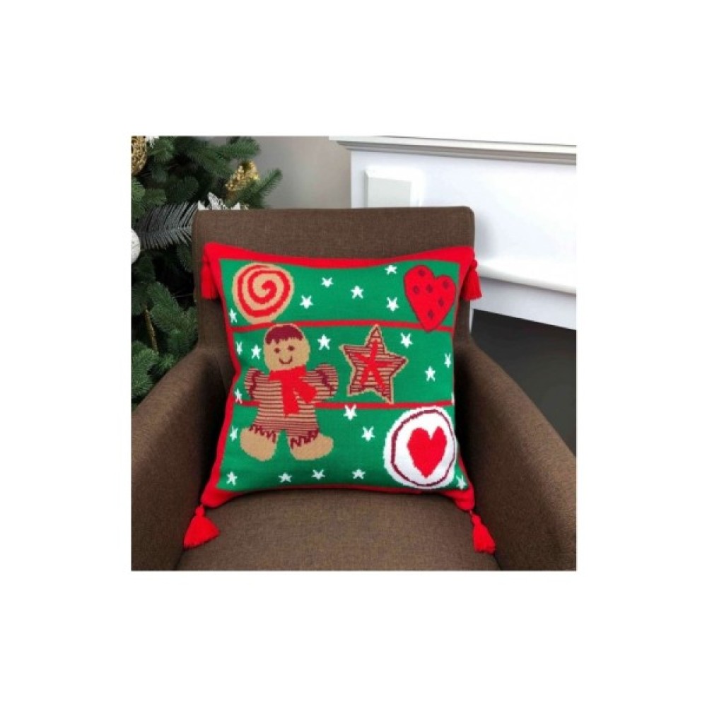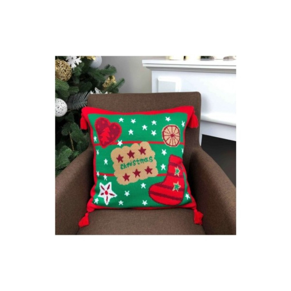 Красива новорічна в'язана наволочка на блискавці виготовлена зі 100% акрилу. Ідеальний подарунок близьким на Новий Рік!