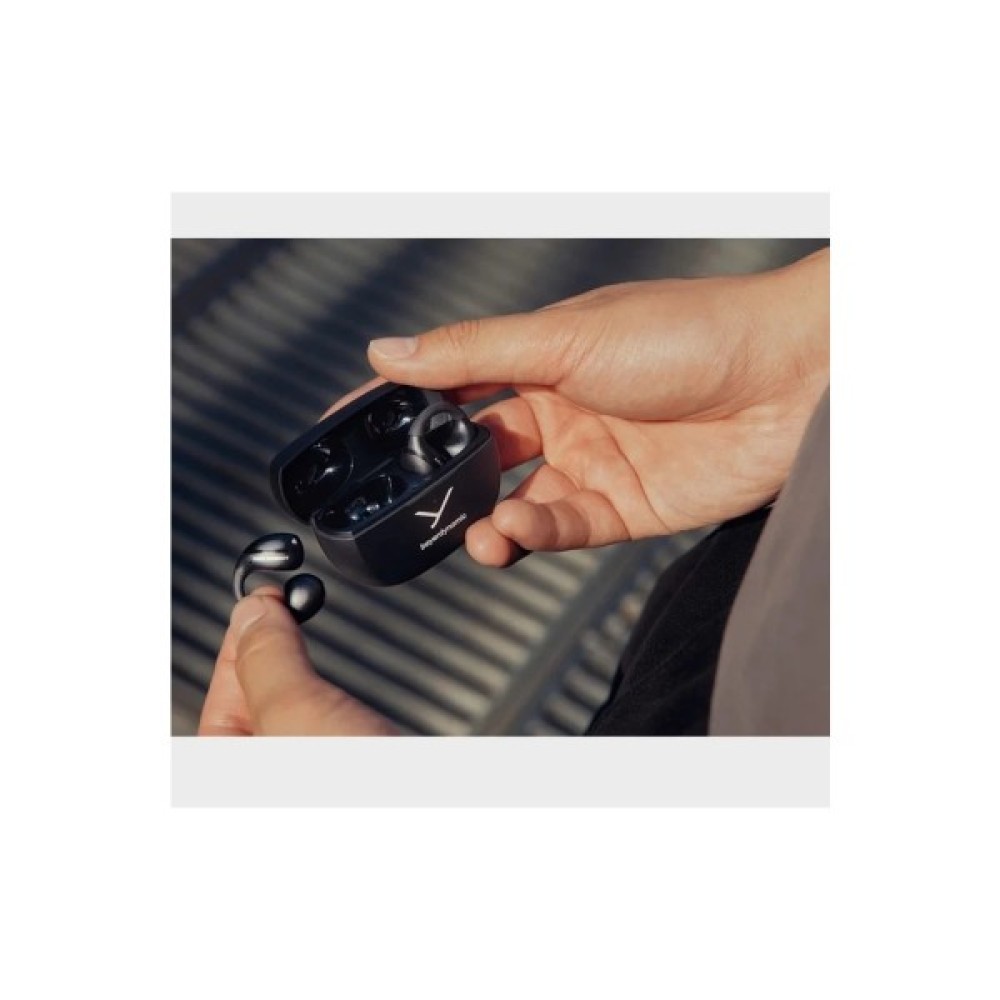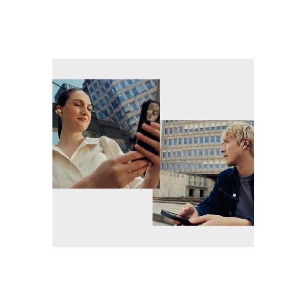 Особлива С-подібна конструкція вкладки охоплює вухо, створюючи відкриту дугу, яка забезпечує стійку посадку без тиску на слуховий прохід. Вага навушників рівномірно розподіляється по зовнішній частині вуха, що робить їх ідеальними для тривалого носіння - будь то робочий день, прогулянка чи переліт.