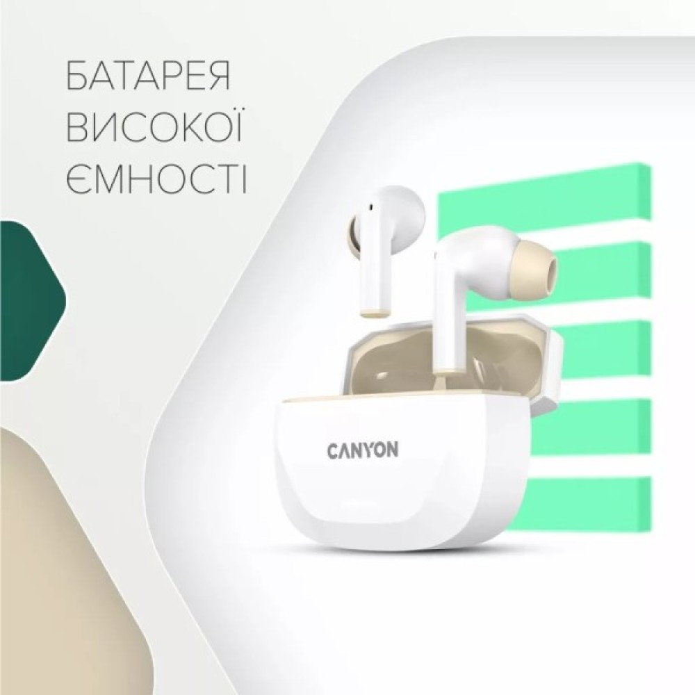 Навушники Canyon Hexagon 7 TWS ANC+ENC Wireless Charge White/Beige (CNS-TWS7WB)
