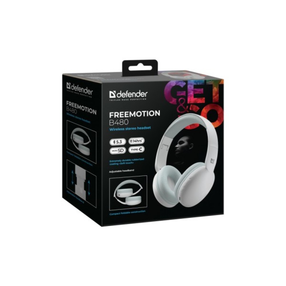 Бездротова Bluetooth-гарнітура Defender FreeMotion B480 поєднує компактність і функціональність для комфортного щоденного використання. Завдяки складній конструкції навушники легко поміщаються в сумку, що робить їх ідеальним супутником у поїздках.