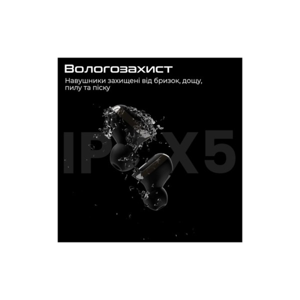 Крім цього, навушники мають захист за стандартом IPX5, що робить їх ідеальними для використання у будь-яких погодних умовах, забезпечуючи стійкість до бризок, дощу, пилу та піску. Однак їх не рекомендується повністю занурювати у воду.