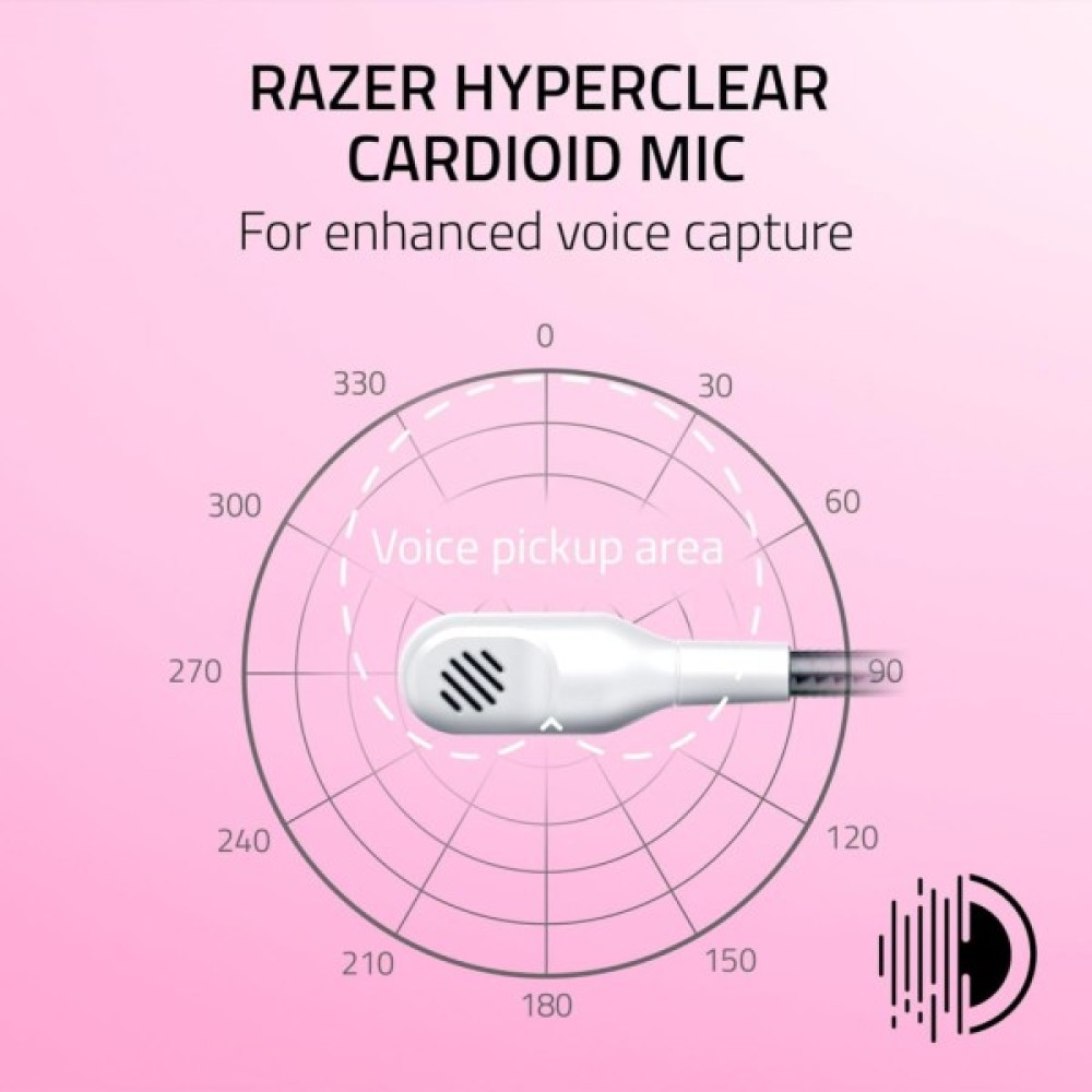 Не менш важливим є і мікрофон Razer HyperClear, який виступає гарантом кришатливо чіткого голосового спілкування. Вбудований у корпус, цей кардіоїдний мікрофон ефективно ізолює ваш голос від фонових шумів, забезпечуючи незмінну якість передачі звуку без жодних перешкод. Це дозволяє вашим напарникам і глядачам чітко чути кожне слово.