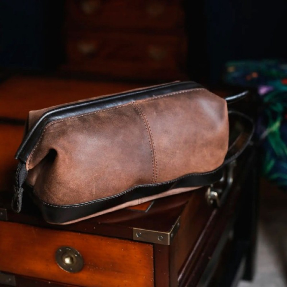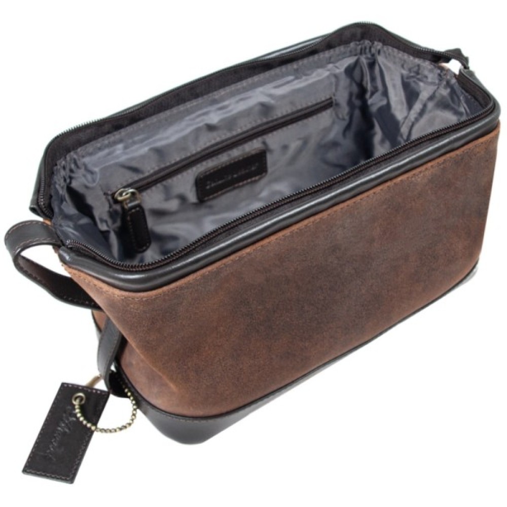 Несесер Ashwood Lou Brown - стильний аксесуар, виконаний з високоякісної матової телячої шкіри, що нагадує замшу. Він володіє містким основним відділенням на блискавці, що дозволяє зручно розмістити все необхідне приладдя, а внутрішні кишені забезпечують ідеальну організацію простору. Зручний ремінець для перенесення робить поїздки комфортними, а натуральна шкіра гарантує довговічність виробу.