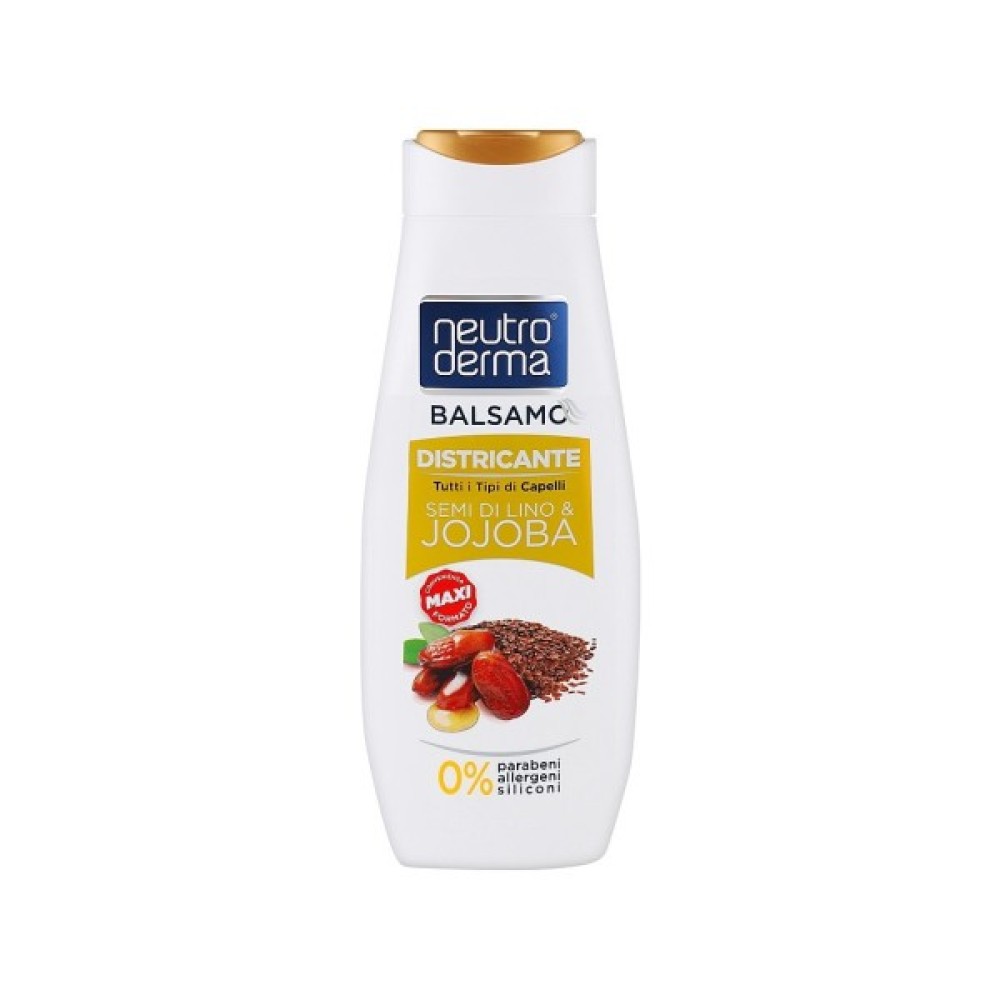 Живильний кондиціонер Neutroderma з насінням льону та жожоба підходить для всіх типів волосся. Завдяки ексклюзивній формулі розплутує волосся, надаючи йому яскравість і блиск. Не містить: парабенів – силіконів – алергенів – SLS