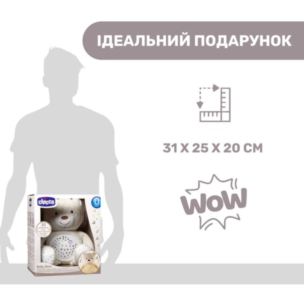 Іграшка музична Chicco Ведмедик із приємними мелодіями та м'яким світлом подарує малюкові відчуття комфорту.