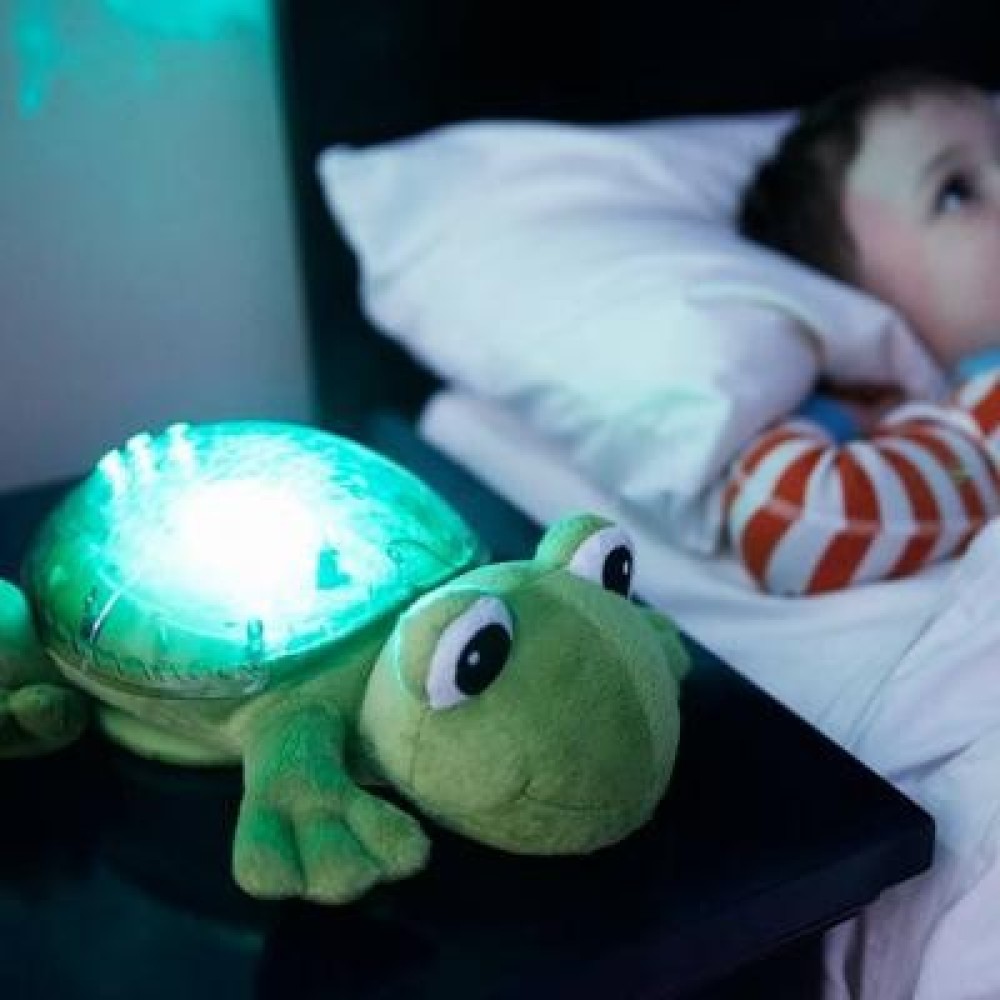 Ваш малюк боїться засипати в темряві або в тиші, тоді на допомогу вам прийде музичний нічник Cloud B Жаба (7423-FG). Жаба прийшла з болота, щоб допомогти мамі і татові подарувати малюкові спокійний сон. Вогники на спинці жаби створять чарівне зелене сяйво, яке допоможе дитині впоратися зі страхом темноти і створить ефект рухомих хвиль по всій кімнаті.