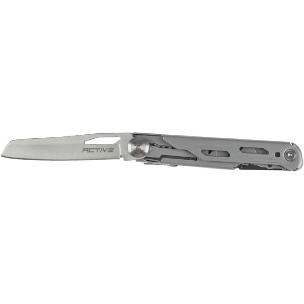 Active Knecht 2 – це багатофункціональний ніж українського бренду Active Knives&Tools. Клинок ножа виготовлений з високоякісної нержавіючої сталі марки 440 та має звичайну різальну крайку. Решта інструментів та руків’я виготовлені з нержавіючої сталі з маркуванням 420. Для зручного транспортування Active Knecht 2 має кишенькову кліпсу.