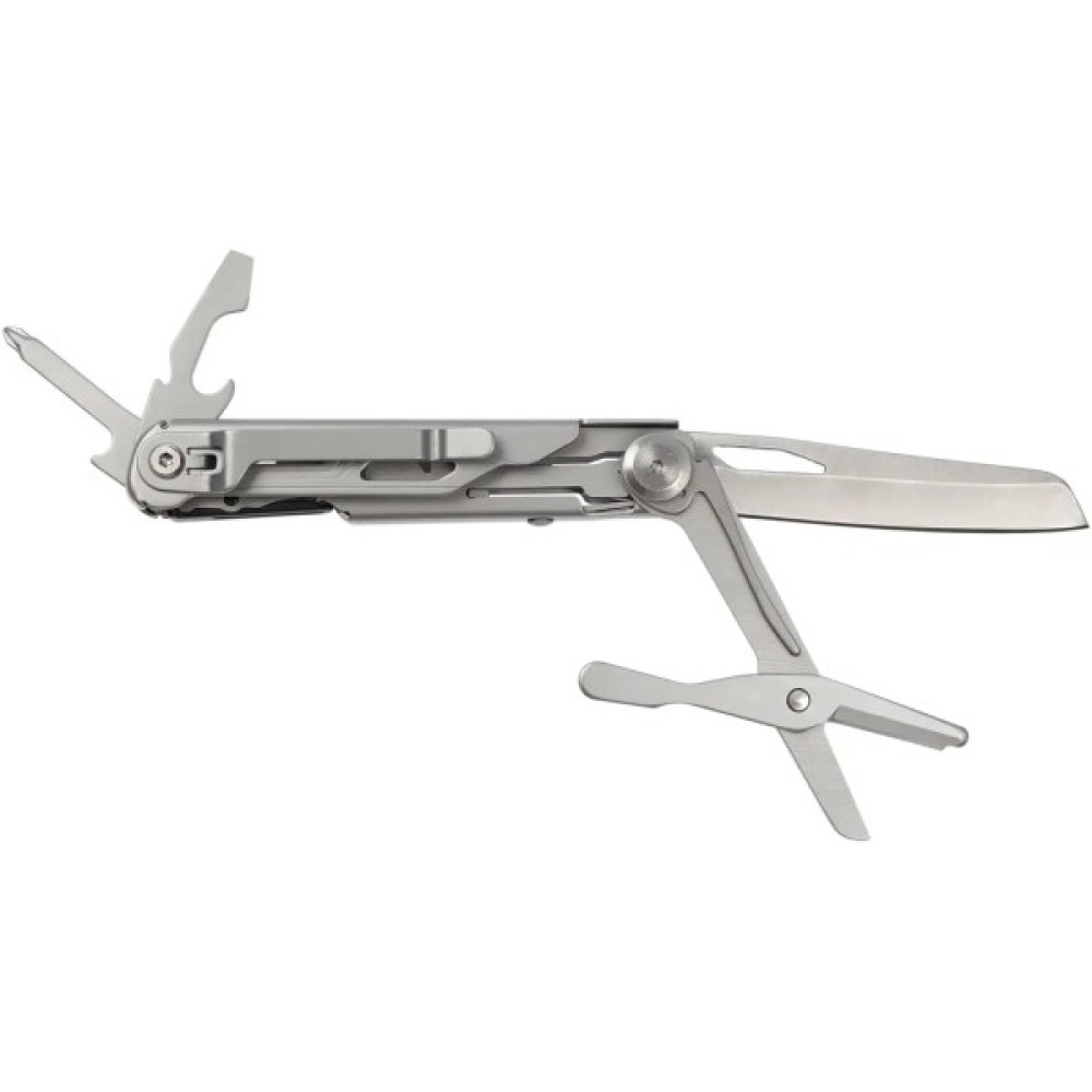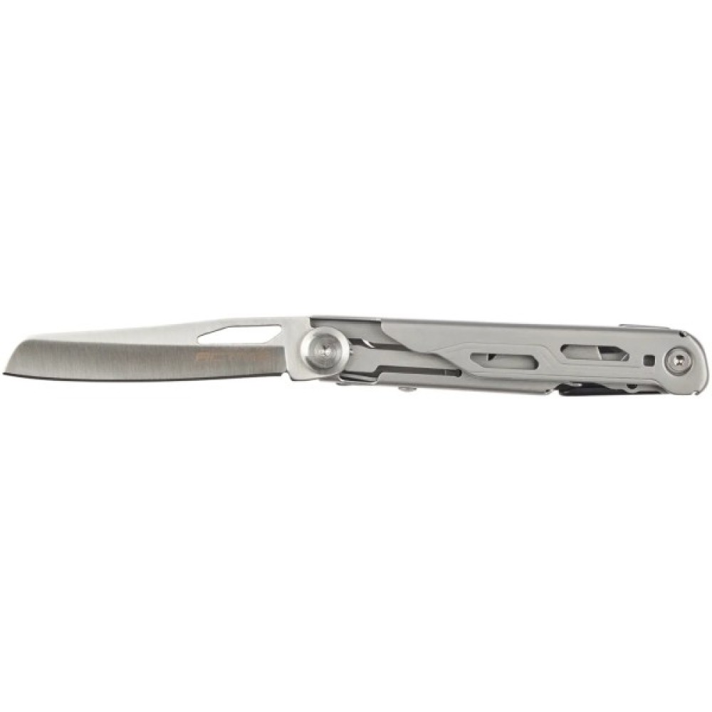 Модель виконана з двох видів сталі: клинок і ножиці з нержавіючої сталі марки 440, решта інструментів та руків’я — зі сталі марки 420.