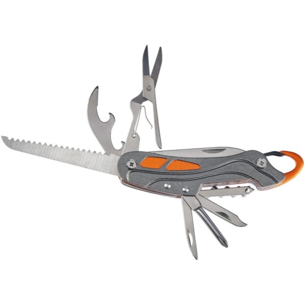 Особливості штопор; шило; пилка; ножиці; напилок; карабін для підвісу; плоска викрутка; відкривачка для пляшок; пилка для нігтів; інструмент для чищення нігтів; відкривачка для консервних банок; інструмент для чищення риби + інструмент для виймання гачків + лінійка; криголам