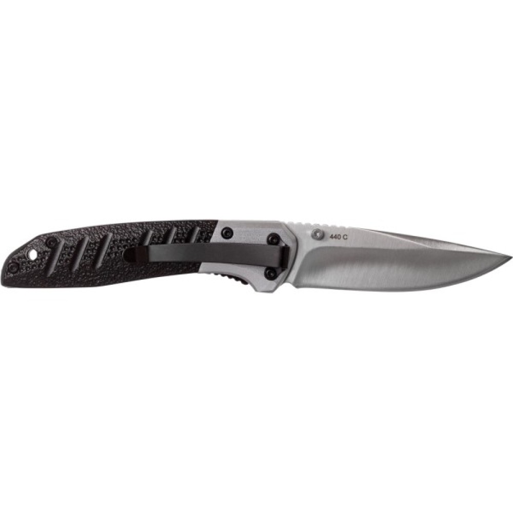 Клинок виконаний у формі Drop point з фальшлезом і насічками на тильній стороні для зручного упору великого пальця. Вибір такої форми обумовлений необхідністю не тільки проведення різу, а й для ефективного уколу. Матеріалом для клинка цієї моделі була обрана сталь 440С з високим показником твердості. Відкривається за допомогою шпенька і фіксується замком Linerlock.
