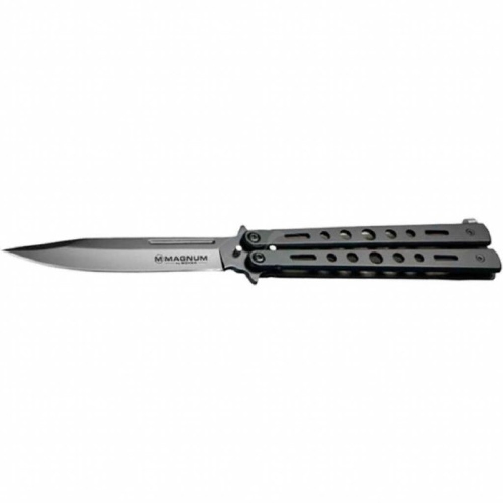 «Ніж-метелик» Boker Balisong зроблений з легких і міцних матеріалів, які забезпечують його високу міцність і надійність. Титанова рукоять ножа оснащена стеклотекстолитовую пластинами, які забезпечують зручність при утриманні ножа в руці. Клинок довго тримає заточку. Затиск на рукояті дозволяє кріпити ніж до ременя або кишені.