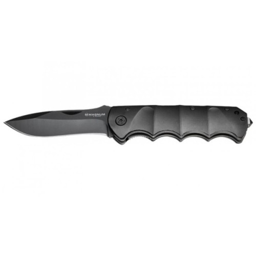 Для клинка кишенькового ножа Boker Magnum Black Spear 42 використовується сталь 440А. Матеріал із середнім вмістом вуглецю, в якому органічно поєднуються непогана твердість і в'язкість. Такий клинок може використовуватися для різних цілей - як для різу, так і неважких ударних навантажень. Заточка ріжучого краю - рівна, універсальна. За відкриття-закриття леза відповідає лінійний механізм Liner Lock. Його відрізняє можливість використання в умовах забруднення і вологи. Це один з найбільш надійних замків, що використовуються у виробництві ножів.
