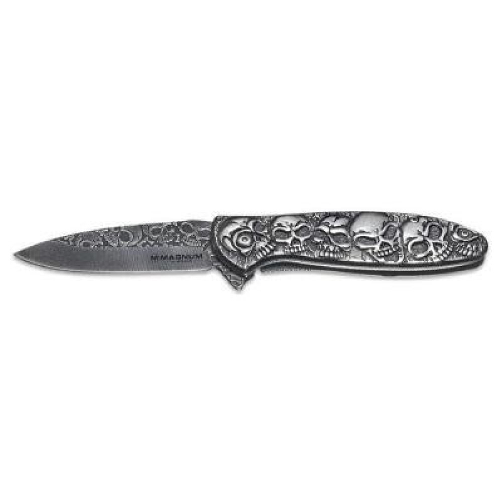 Ніж Boker Magnum Dia De Los Muertos гармонійно поєднує в собі нетривіальний дизайн, який ефектно підкреслює самобутність ножа і характерні риси лінійки Magnum: клинок з нержавіючої сталі 440А, ергономічна текстурована рукоять, надійний замок і кліпса для більш зручного носіння в кишені і на предмети спорядження.