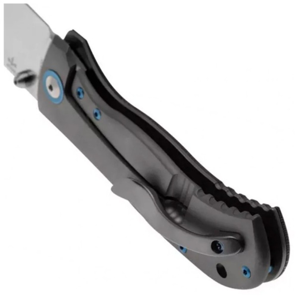 - Рамковим замком із титану - гарантує надійність фіксації відкритого леза;