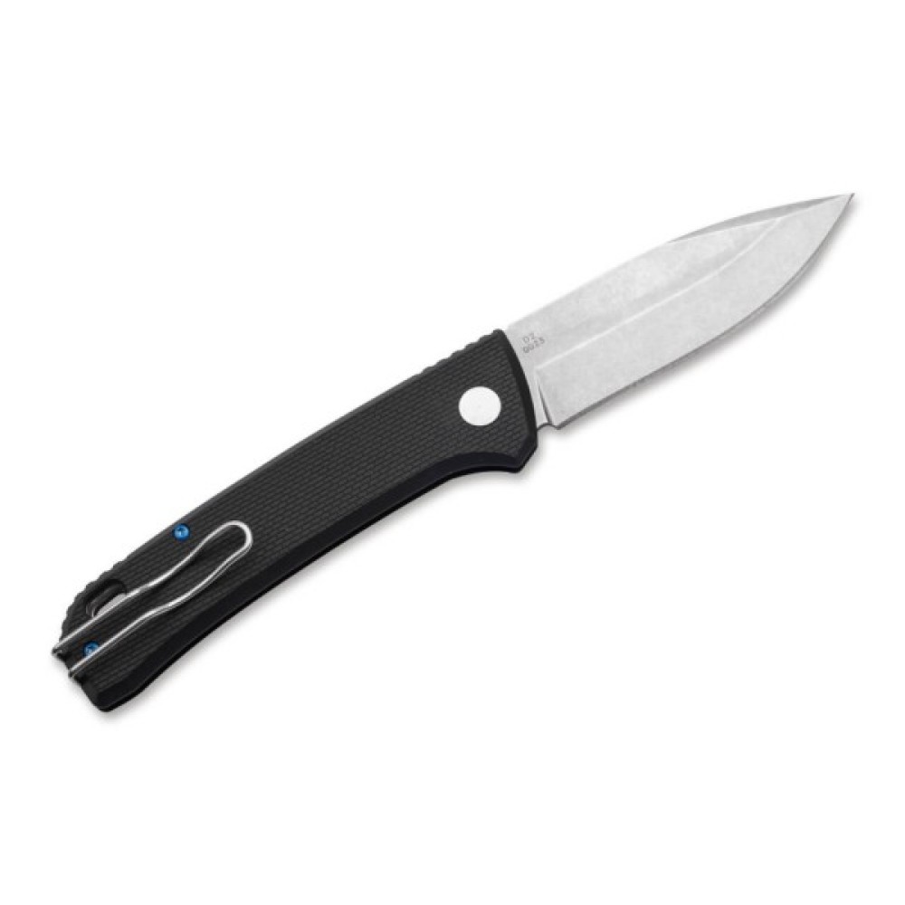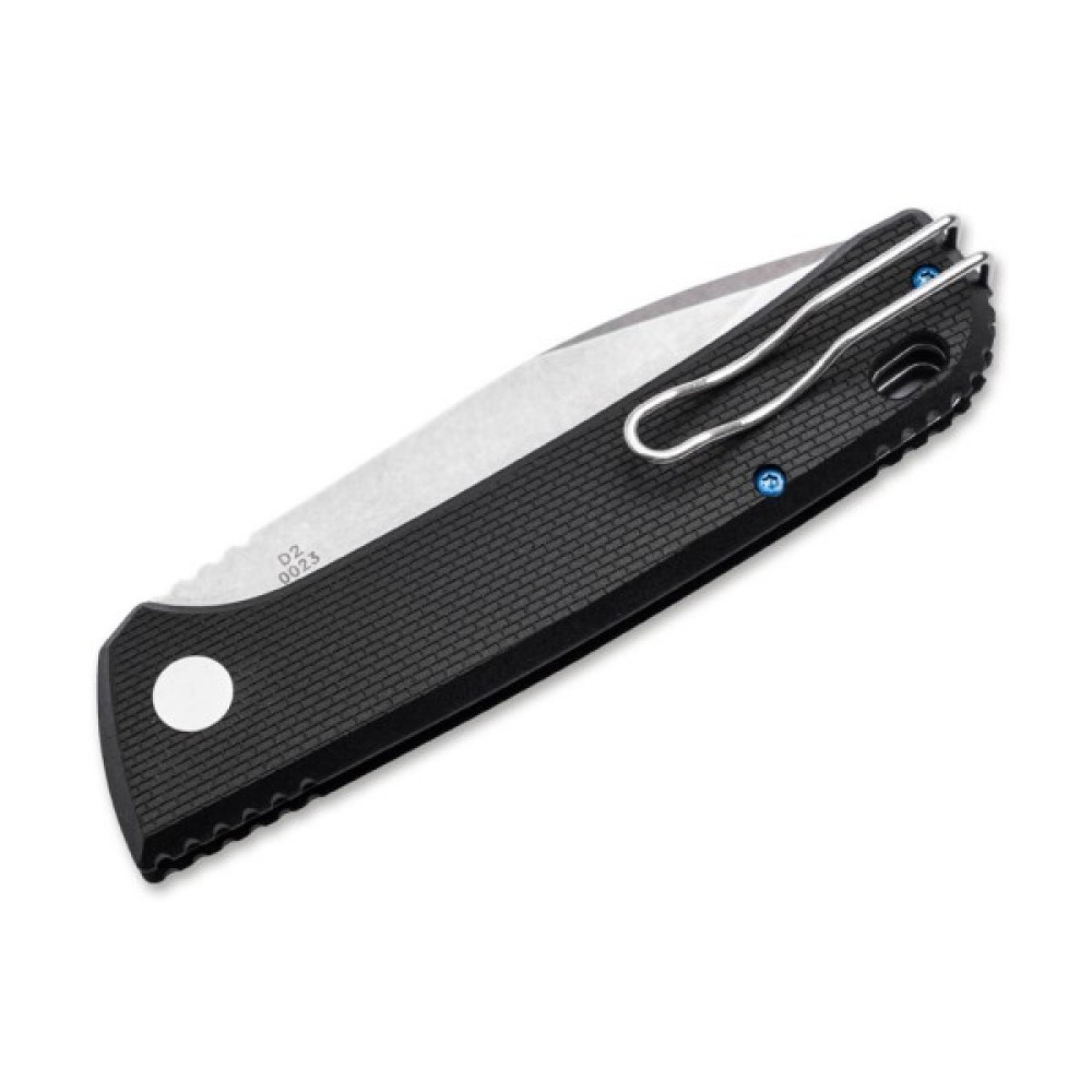 Щоденна рутина залишилася в минулому - Boker Plus FRND Black виривається зі щоденної рутини і бадьорить, як універсальний і тонкий автоматичний ніж з EDC-характером. Лезо Drop-point з D2 відкривається натисканням кнопки і має димчасто-чорне оздоблення Stonewash, завдяки якому невеликі сліди використання майже зникають навіть після інтенсивного використання. Надійний кнопковий замок із додатковим бігунком подвійно захищає лезо під час використання і значно знижує ризик некерованих пагонів ріжучої дії. Випадкове відкриття в кишені штанів також пішло в минуле завдяки запобіжній засувці. Текстурований _Лусочки на рукоятці Grivory забезпечують надійне захоплення навіть у вологих умовах і підкреслюють легкість складаного ножа. Декоративні акценти розставлені анодованими гвинтами та осьовим гвинтом із синьою кромкою. Поставляється з отвором для темляка, дротовим затискачем (наконечник вгору/вправо) і високоякісним нейлоновим чохлом.