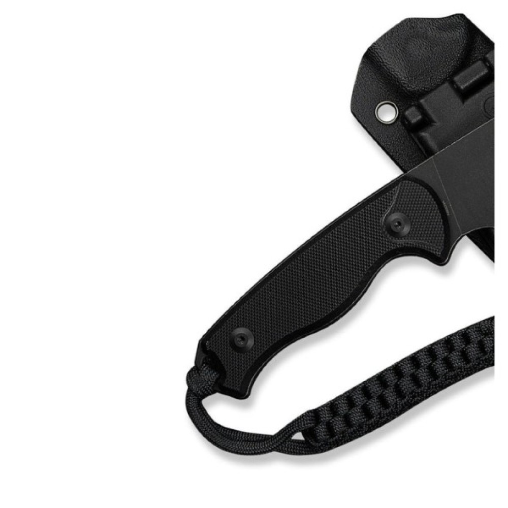 Хвостова частина доповнена плетеним паракордом як прикраса. В комплекті також є чохол з кайдекса із затискачем, розробленим ножовим дизайнером Бобом Терзуола. Затискач з обертовою системою фіксації дозволяє встановлювати ніж у зручному для вас положенні: вертикально або горизонтально.