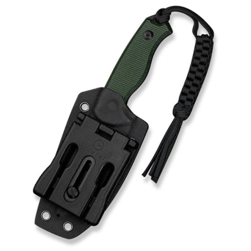 Хвостова частина доповнена плетеним паракордом як прикраса. В комплекті також є чохол з кайдекса із затискачем, розробленим ножовим дизайнером Бобом Терзуола. Затискач з обертовою системою фіксації дозволяє встановлювати ніж у зручному для вас положенні: вертикально або горизонтально.