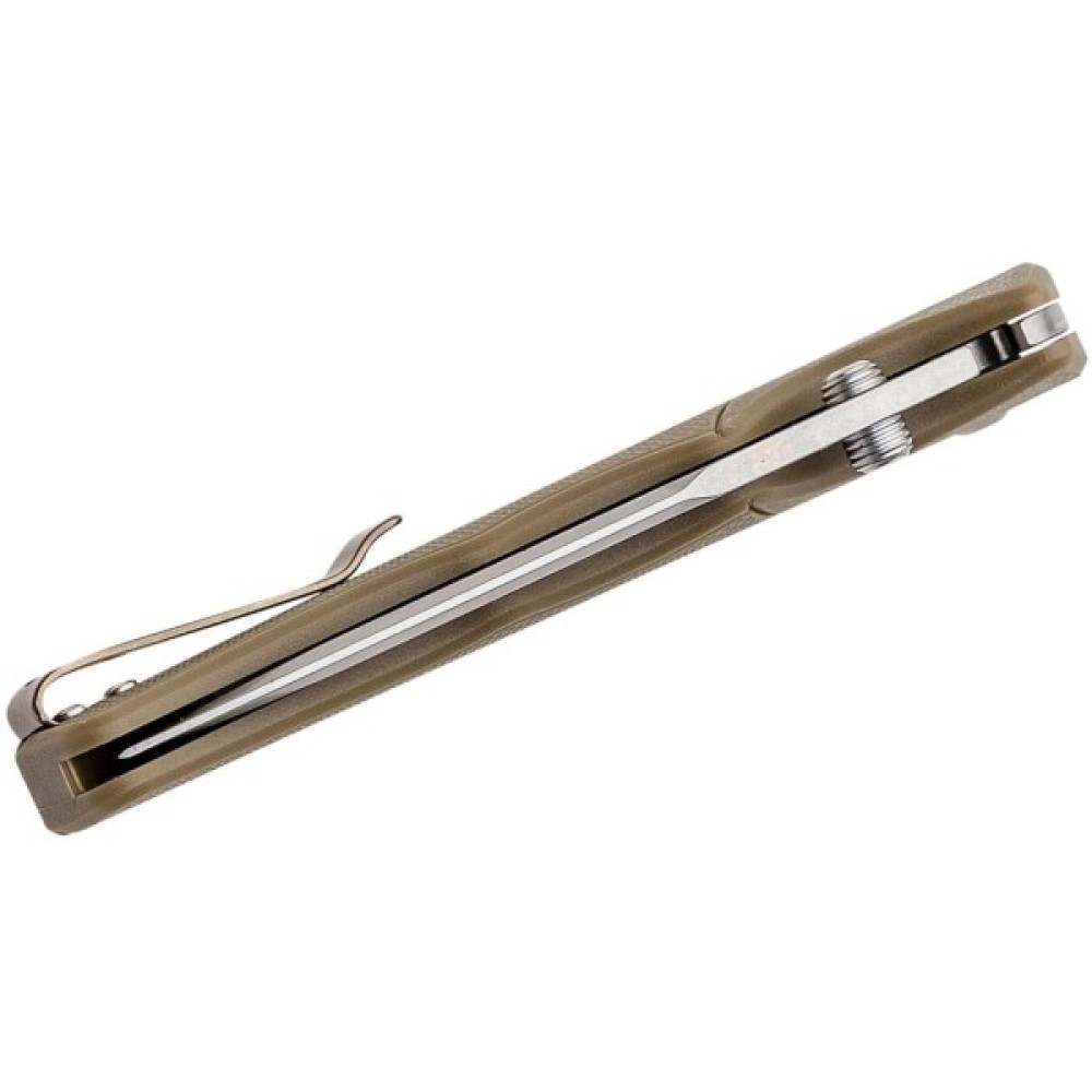 Для створення клинків послугувала нержавіюча сталь марки 4116, піддана кріогеновому загартуванню, що забезпечує високу твердість і здатність утримувати гостру різальну кромку протягом тривалого періоду часу. Накладки на руків'ї виготовлені із міцного GFN із рифленням для кращої чіпкості. Представлені моделі Verdict у різних колірних варіаціях: чорний, пісочний та оливковий.