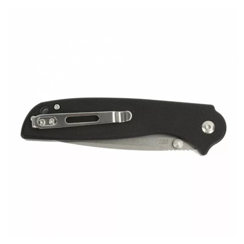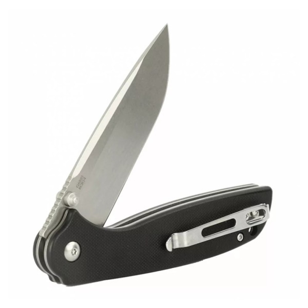 Рукоять моделі виготовлена із застосуванням склотекстоліту G10. Високоміцний матеріал гарантує зручність при використанні ножа і його стійкість до різного роду зовнішніх впливів. Рукоять ергономічної форми, комфортна при захопленні. Поверхня рукоятки текстурована, завдяки чому ніж надійно утримується в руці при будь-яких умовах. Металева кліпса дозволяє фіксувати виріб, і носити його на кишені, на поясі або прикріплювати до сумки. Передбачено отвір для темляка.