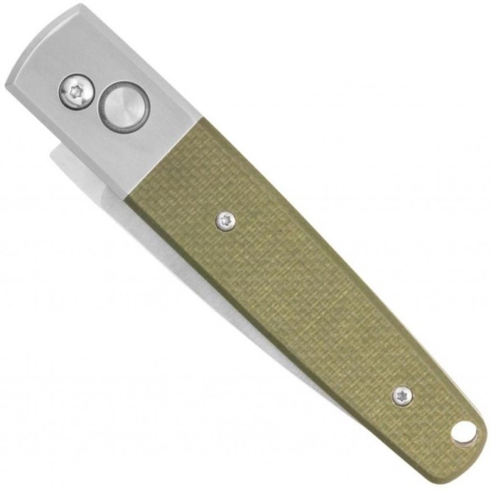 Рукоятка також частково зроблена зі сталі. Другий використовується для її матеріал - сучасний полімер G10. Це дуже міцне і довговічне композитне волокно. Поверхня рукоятки - текстуроване, що покращує її зчеплення з долонею. На внутрішній стороні розташована металева кліпса для приєднання до поясного ременя або фіксації в кишені. Ця невелика деталь дозволяє тримати ніж під рукою і не втратити його.