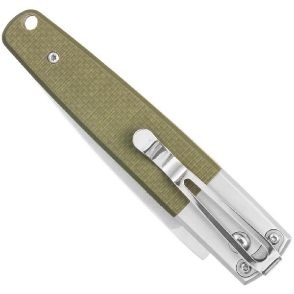 Для клинка цього ножа використовується якісна марка сталі 440С, яка містить марганець, кремній і хром. Добавки забезпечують металу високу твердість і здатність протистояти основним видам корозії. В тому числі, ніж не схильний до іржавіння. Ріжуча кромка Ganzo 7211 - пряма, а поверхня клинка оброблена методом сатинування поверхні. Такий вид шліфування утворює на поверхні ножа абстрактний візерунок з дрібних штрихів. Клинок виглядає напівматовим і майже не відблискує.