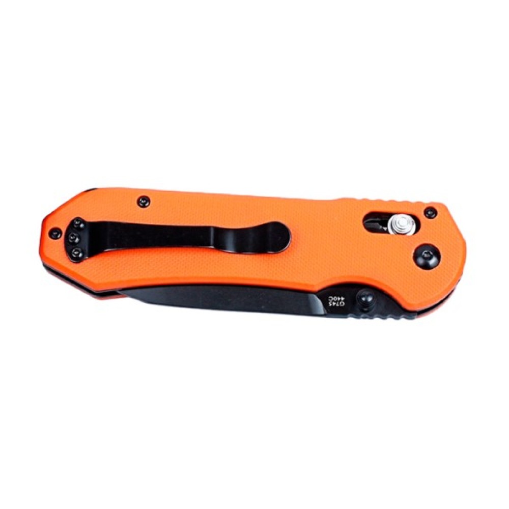 Складні ножі особливо зручні для туризму, а модель Ganzo G7453P зроблена таким чином, щоб врахувати всі особливості польового використання. Метал для цього ножа-нержавіючий. Це тверда марка сталі 440С (близько 58HRC), яка здатна довгий час зберігати високу якість заточування. Клинок має гострий кінчик, характерний для форми drop-point, і повністю рівну лінію заточування. Щоб поверхня леза не блищала на сонці, вона покрита стійкою синтетичною фарбою чорного кольору. Як результат — метал матовий, а ніж не тільки практичний, але і дуже привабливий зовні. Подряпини на такій поверхні практично не помітні, оскільки для покриття використовуються тільки матеріали високої якості.