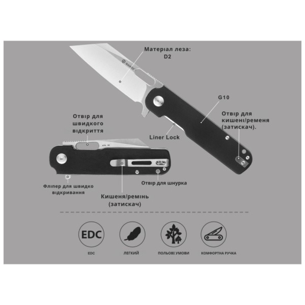 Модель розрахована на EDC носіння, складається до розмірів 116 мм (довжина) та комплектується сталевим затискачем на кишеню, щоб ви завжди могли тримати інструмент під рукою на випадок необхідності.