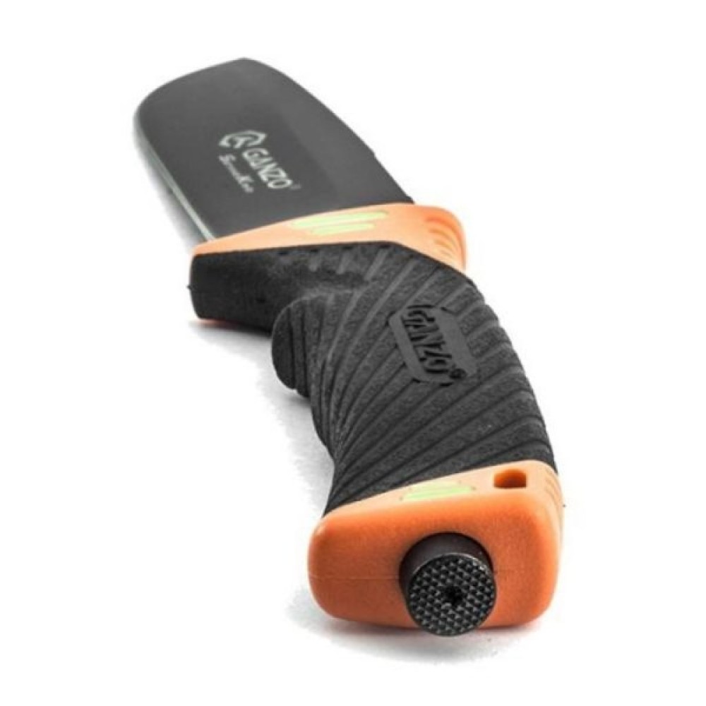 Модель Ganzo G8012 орієнтована не тільки на любителів риболовлі або полювання, але і на справжніх екстремалів, які виїжджають у найвіддаленіші від благ цивілізації райони. Тому ніж створений надійним, практичним і максимально функціональним. Його клинок виготовлений з якісного сплаву — нержавіючої сталі 7Cr17. Цей метал загартовується до 57HRC, за ним легко доглядати, його нескладно заточувати. Довжина клинка ножа становить 11,5 см.Його поверхня виглядає досить незвично завдяки чорному покриттю. Воно не просто виконує декоративну роль, але і сприяє кращому захисту від корозії, а також позбавляє від відблисків на сонці. Стильний дизайн доповнює комбіноване заточення ножа. Ділянка біля рукоятки заточена дрібними зубчиками, а інша частина — рівна. Так що ніж підходить абсолютно для будь-яких матеріалів і видів робіт. З його допомогою можна приготувати бутерброди, і розрізати туристичні мотузки або ж виконати інші види робіт.
