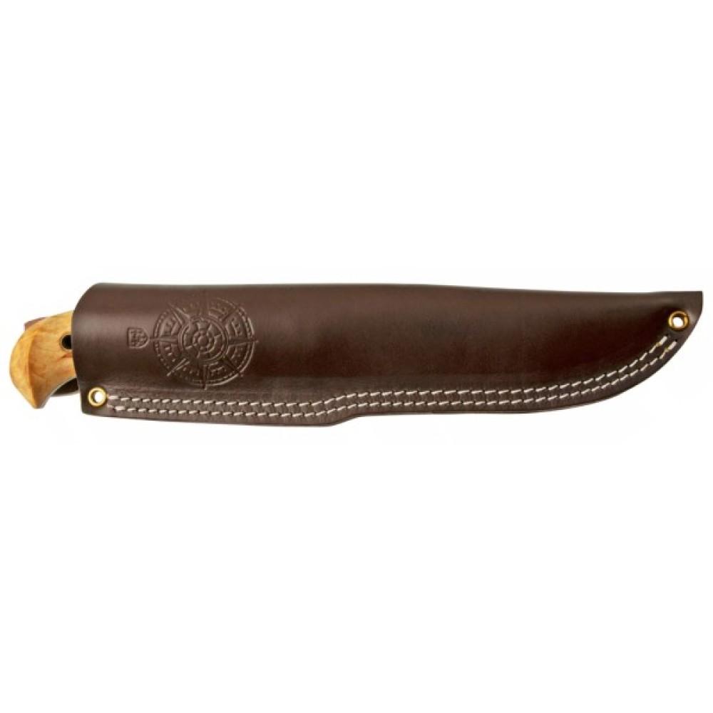Руків'я ножа, традиційно, формують профільовані накладки з натуральної деревини карельської берези, які фіксуються заклепками.