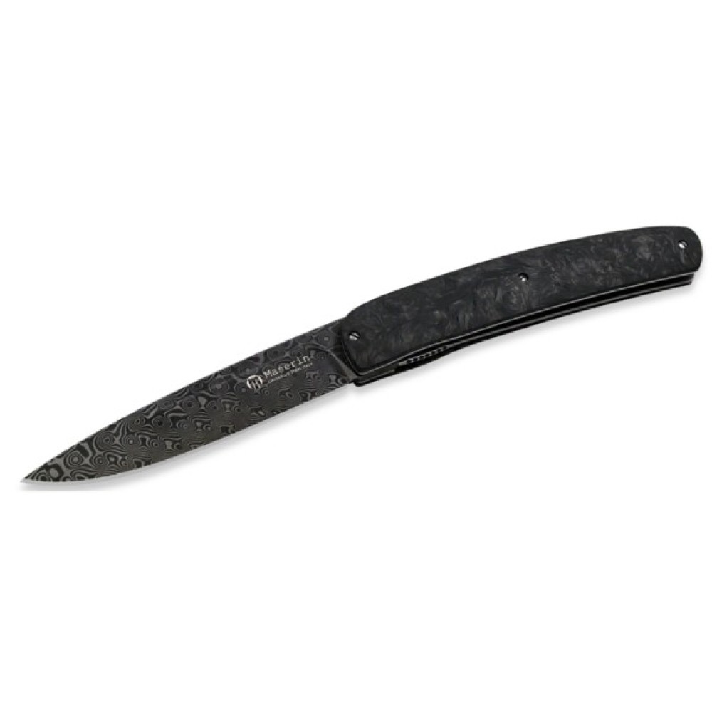 | Лезо та рукоятка виконані у простому чорному кольорі та випромінюють елегантність. Лезо виготовлене з високоякісної дамаської сталі, відомої своєю чудовою стійкістю кромки та стійкістю до корозії. Ніж зручно розкривається при натисканні на невеликий торцевий виступ. Вузька довга рукоятка дозволяє зручно утримувати ніж при нарізуванні. |