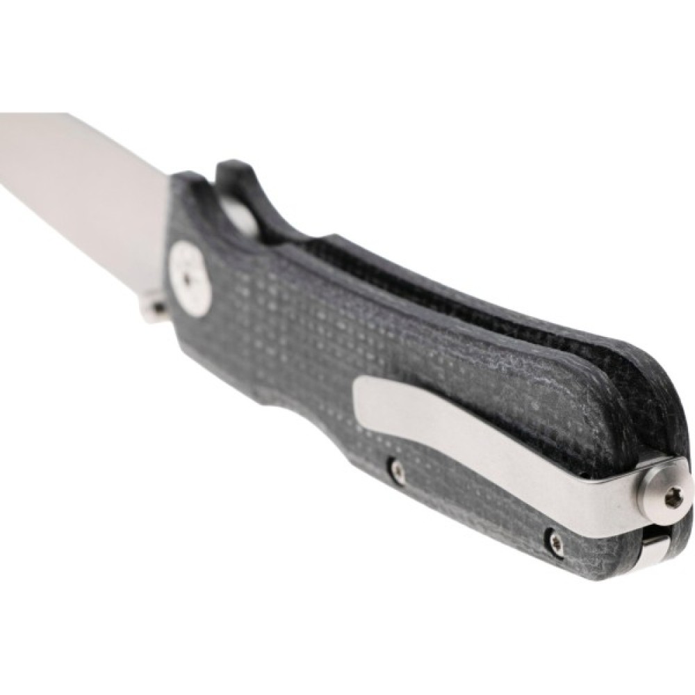 Кліпса — сталева, глибокого носіння (deep carry), підходить як для правої, так і для лівої руки. Ніж надійно ховається в кишені, не створює незручностей при русі. Вага — близько 85 грамів — досить легкий для щоденного носіння, але водночас достатньо відчутний у руці.