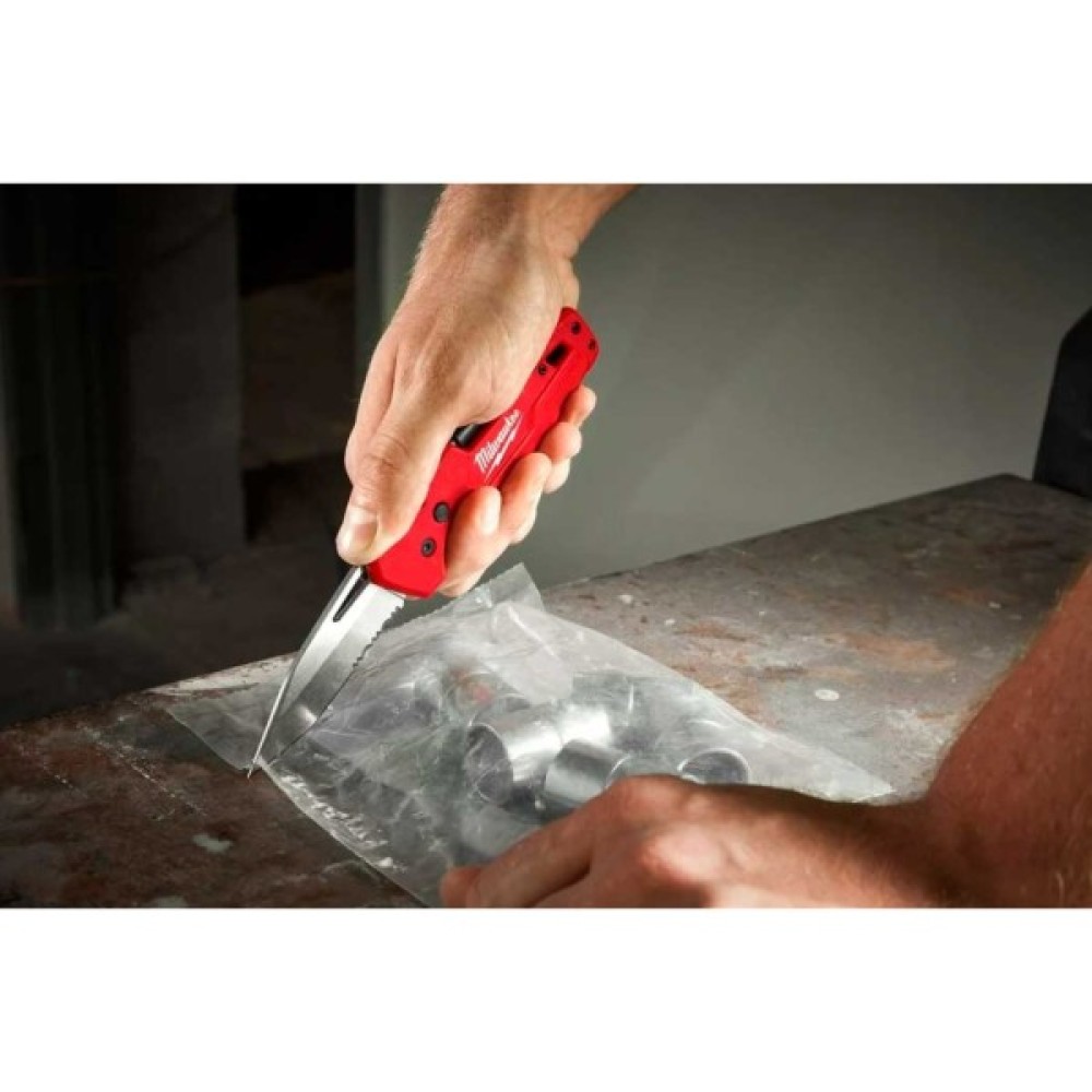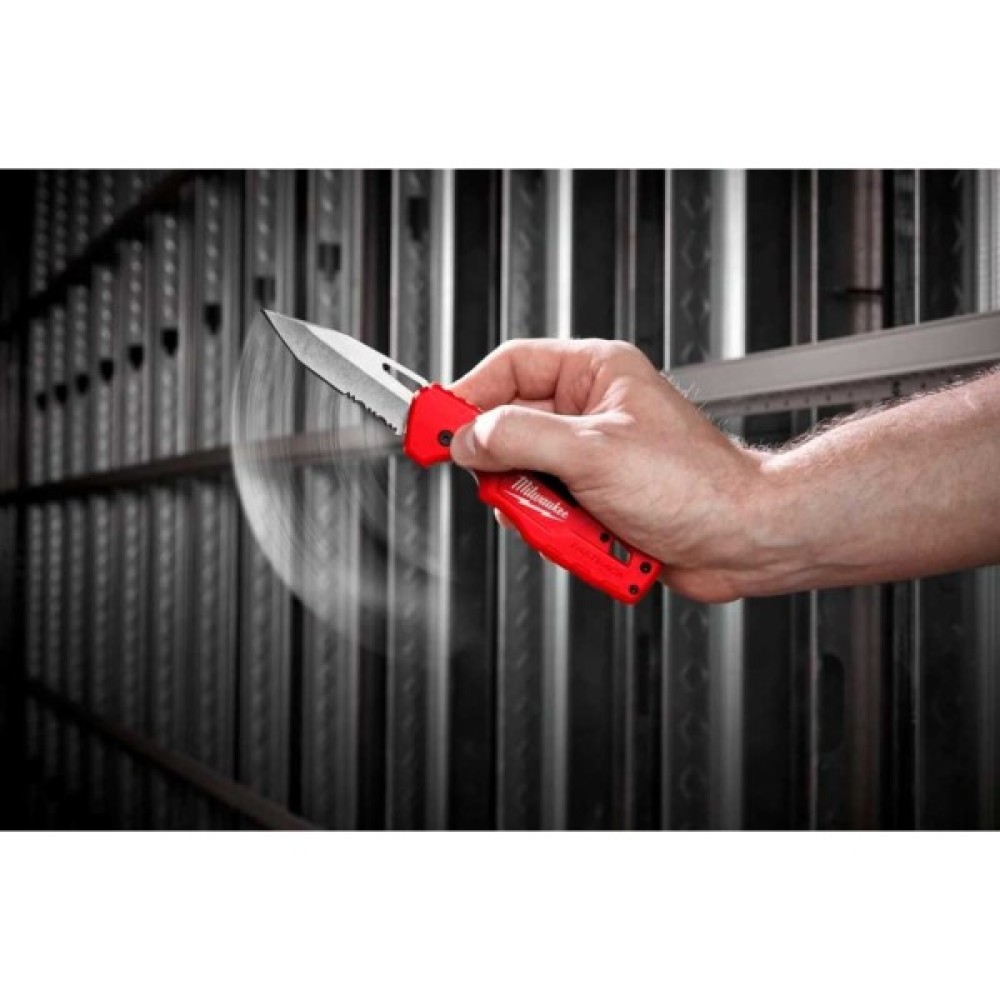 - Частково зазубрене лезо для багатофункціональності, що полегшує як проколювання, так і розрізання матеріалу.