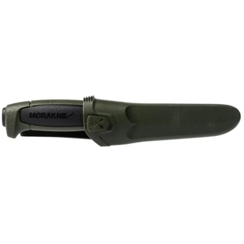 Morakniv 546 — надійний універсальний ніж, створений для роботи у вологих або агресивних середовищах, де вуглецева сталь швидко піддається корозії. Лезо з нержавіючої сталі Sandvik 12C27, або іншої, зокрема переробленої сталі не боїться дощу чи снігу, зберігає гостроту навіть після тривалого використання та майже не потребує догляду. Рукоять із протиковзним покриттям і яскравим упором забезпечує впевнений хват, а насичений колір допоможе швидко знайти ніж серед інструментів або на природі.