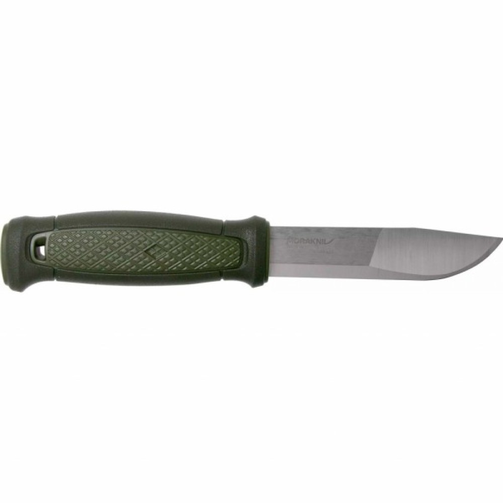Morakniv Kansbol - продовження лінійки популярних універсальних ножів Outdoor 2000 з оновленим сучасним дизайном рукояті. Клинок довжиною 109 мм виготовлений зі шведської нержавіючої сталі Sandvik 12C27, оброблений методами "стоунвош" і сатинування, оптимально підійде для вирішення більшості побутових, туристичних і мисливських завдань. Рукоять виготовлена з міцних полімерів. Для запобігання ковзання та підвищення комфорту в утриманні, рукоять має прогумоване покриття, а також текстуровану вставку всередині. Отвір у тильній частині рукояті передбачено для кріплення темляка.