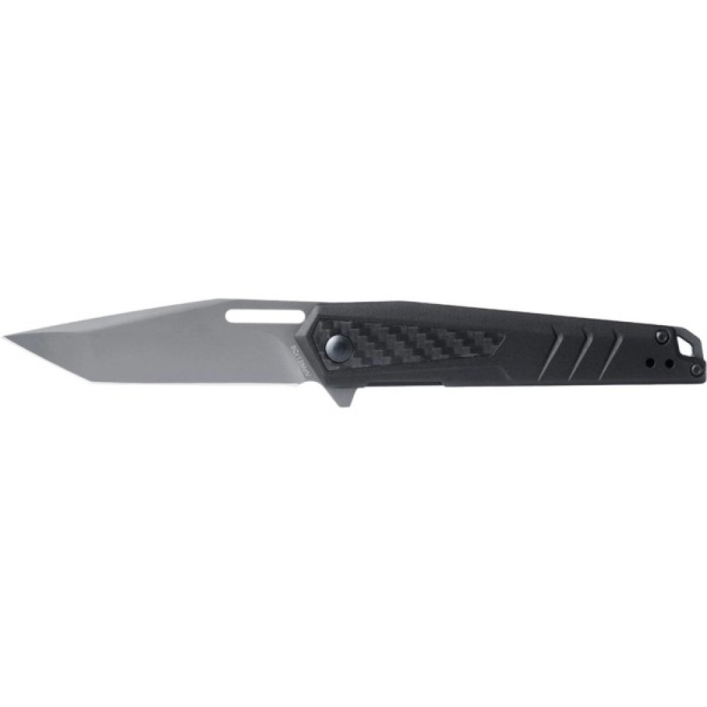 Клинок профілю American Tanto виготовлений з нержавіючої сталі 8Cr13MoV та забезпечує стійкість до щоденних умов експлуатації. Приводиться ніж в робоче положення завдяки зручному підпружиненому фліперу та надійно фіксується замком Liner Lock. Двокомпонентне руків'я виконане з алюмінію та вуглецевого волокна. Накладки мають ергономічну форму, завдяки чому ніж зручно лежить в руці.
