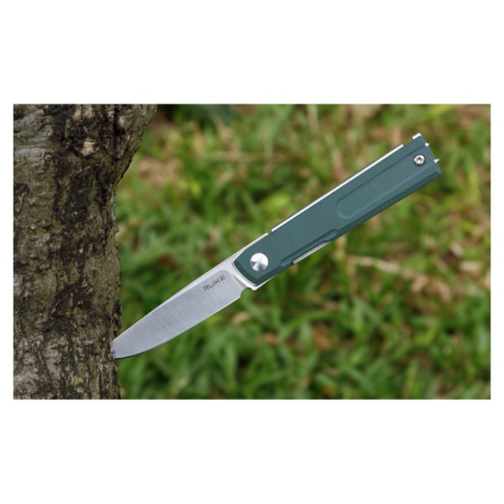 У складаному ножі Ruike D712-G поєднуються строгість форми та утилітарна практичність. Лаконічний дизайн заснований на чітких лініях та точних пропорціях: тут немає нічого зайвого — виключно функціональність та впевненість у кожному русі.