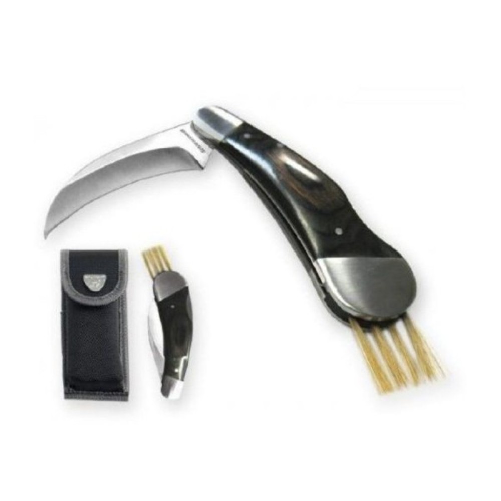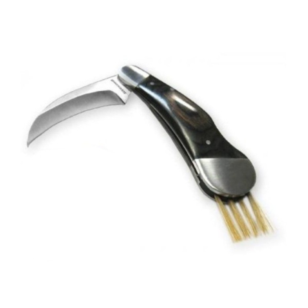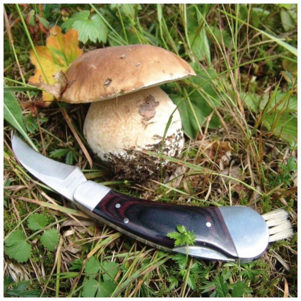 Для виготовлення ножа виробники використали якісну нержавіючу сталь. Зігнуте лезо дозволяє акуратно відокремити гриб, не пошкоджуючи грибницю. Щіточка допомагає очистити шапку і ніжку гриба від бруду та листя.