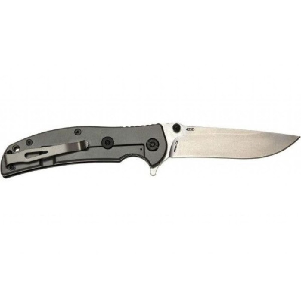 Прямі спуски починаються практично з самого обуха, на верхній його частині присутня насічка під великий палець. Форма клинка - Drop-Point, яка забезпечує ножу хороші колючі і ріжучі властивості.