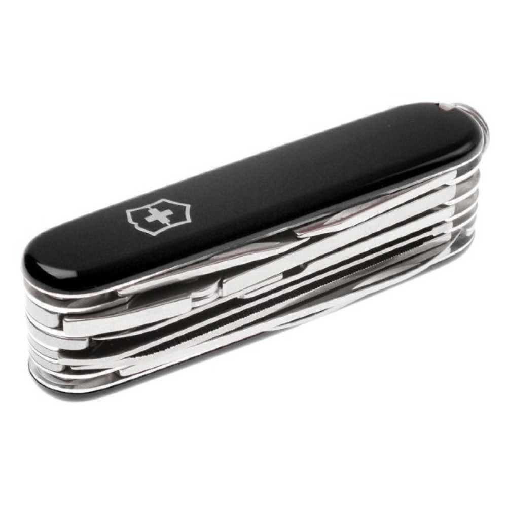 Victorinox HANDYMAN (чорний) – швейцарський багатозадачний ніж 91 мм на 24 функції. Представляє колекцію середніх складаних ножів Victorinox. Містить комбіновані плоскогубці, пилку для дерева та металу, ножиці, долото та багато інших робочих інструментів. Handyman озброїть вас до будь-якої непередбаченої ситуації: ви завжди готові відремонтувати та виправити будь-що. Всі інструменти гарантують бездоганну, довговічну роботу, не люфлять. Ножовий замок Slip-joint – це перевірена часом конструкція, яка фіксує лезо в положенні до руків’я та надійно захищає від закидання під час роботи.