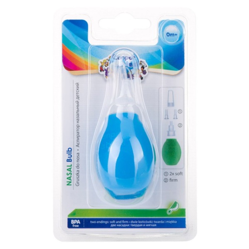 Завдяки спеціальній формі, аспіратор видаляє слиз із носа немовлят ефективніше. Аспіратор має 2 насадки: м'яку, яка дозволяє безпечно очистити ніс дитини, і тверду, яка захищає від глибокого проникнення вглиб носа.