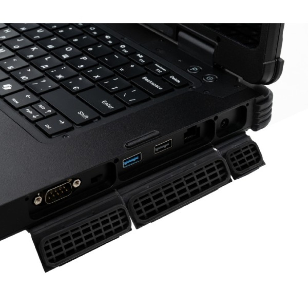 Ноутбук обладнаний різноманітними портами для зручності підключення пристроїв: miniHDMI, USB 2.0, USB 3.2, USB 3.0, USB Type-C, LAN (RJ-45), комбінований аудіороз'єм та навіть RS-232. Це дає можливість легко підключатися до різних зовнішніх пристроїв та аксесуарів без потреби в адаптерах.